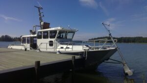 Dim.: loa 16,9 mtr, B 4,54 mrt, d 1,10 mtr